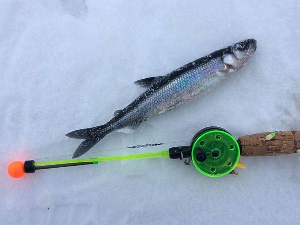 Именно такая снасть является самой популярной, потому что поклевки на такой удочке видны на большом расстоянии от лунки, грузовая мормышка быстро опускается ко дну и работа с такой простой снастью проста и доступна даже начинающему рыбаку.