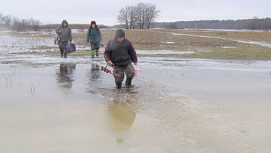 После того как рельеф изучен и перспективные точки определены, самое время приступить к приготовлению лунок. Как правило, готовится 5-6 пар лунок на расстоянии 15–20 метров друг от друга.