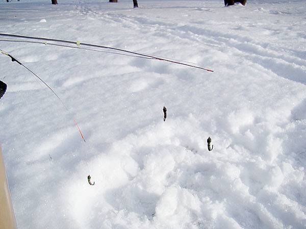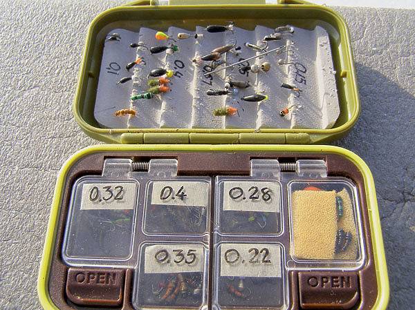 К экспериментам с приманками я прибегаю в случаях, когда рыба обозначила свое присутствие под лункой, но до уверенной поклевки дело так и не дошло. На этот случай в моем ящике всегда имеется несколько оснащенных другими мормышками удочек.