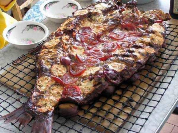 Большой сазан, запечённый в духовке целиком
