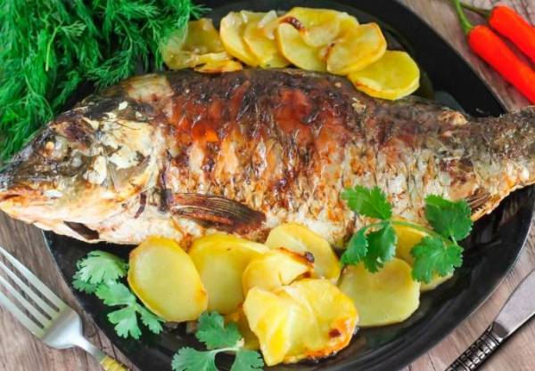 • Сазан, запеченный с картошкой