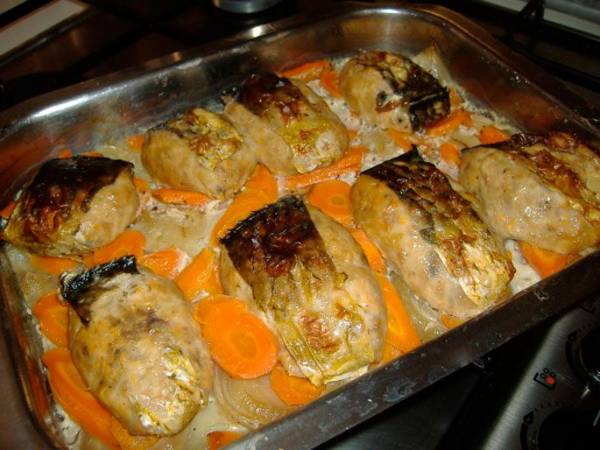 • Сазан, фаршированный морковкой и луком