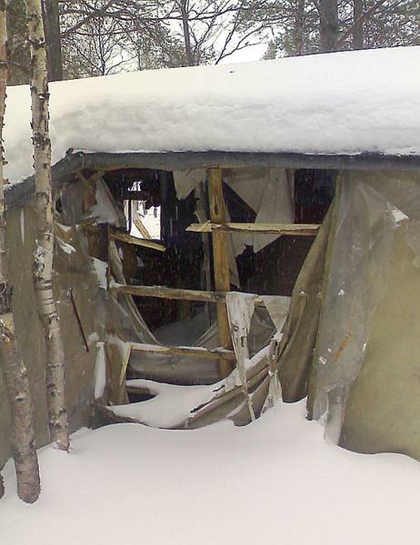 Но бывает и совсем другое. Идешь километров двадцать в свою собственную избушку поздней осенью после выпадения снега на лыжах или пешком. Рюкзак тяжелый, время в пути четыре-пять часов, подходишь к зимовью перед самой темнотой, а там тебя ждет проломленная стена и выломанная дверь.