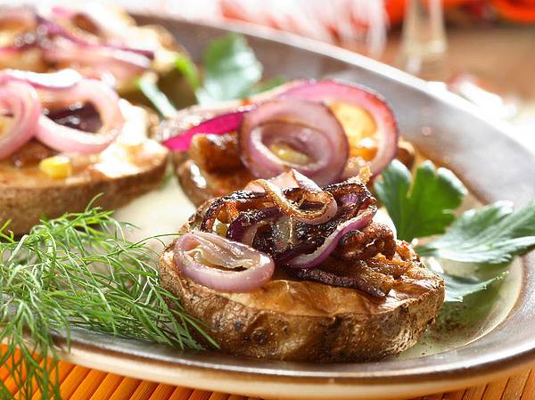 Путь совершенствования декора приготовленных блюд бесконечен. К примеру, можно параллельно с варкой бульона запечь в духовке или аэрогриле некрупные яблоки (твердые груши, мелкую айву), предварительно подготовив их следующим образом.