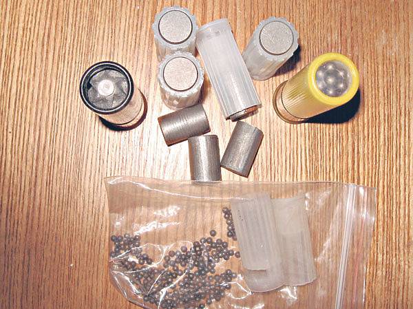 Я познакомился с изобретателем и заинтересовался стрельбой его патронами. Вскрыв патрон со стальной дробью № 7, осмотрел компоненты, особенно пыж-контейнер, и решился. Стреляю на «кругу» из «Германики» с насадкой «цилиндр», патроны с дробью № 7. Результат — 19 тарелочек.